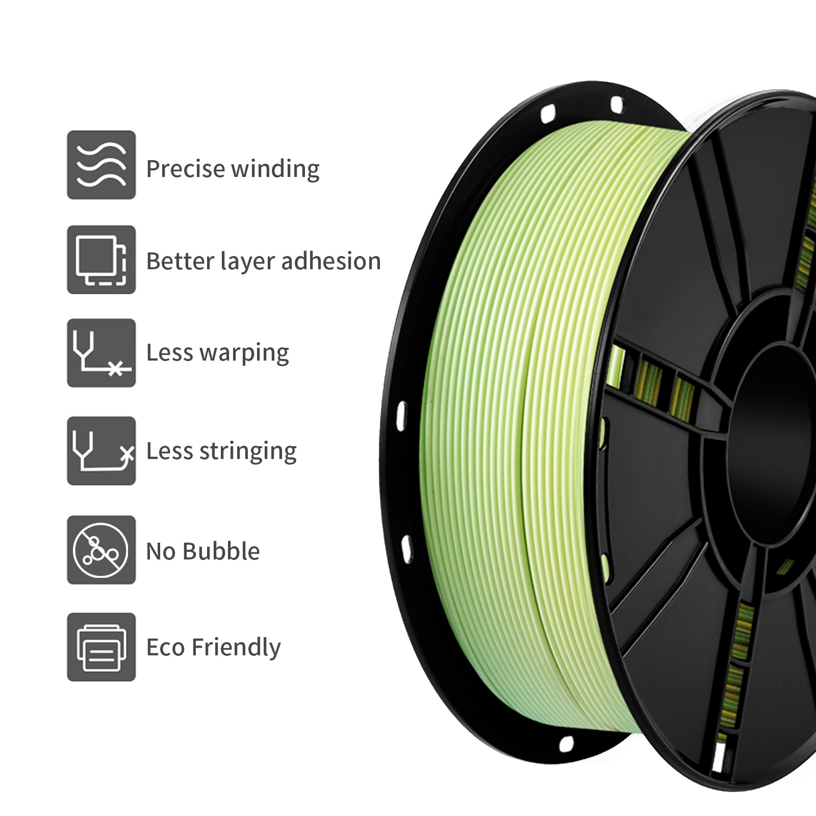 PLA filament staat bekend om zijn eenvoudige verwerking, strakke printresultaten en milieuvriendelijke eigenschappen. Het materiaal wordt gemaakt uit hernieuwbare grondstoffen zoals maïs of suikerriet, waardoor het een duurzamer alternatief is voor traditionele kunststoffen.